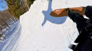 雪面に飛び込む刹那に雪の状況の見極めができないと痛い目に遭う。