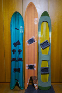 そうした状況で同じく高い官能性を発揮する『MOSS Q57』が、ボードセンターから感じる強力な浮力を感じさせながら雪上を飛ぶようにターンしていくのに対して、SLASHER IIは同程度の浮力を感じさせながら、縦方向へのヌケの良さを活かしてトップから落ちていくイメージ。その時にスリリングさはほとんどなく、安定した状態で新雪を捉え続けてくれるので、安心して操作に打ち込める。サーフボードで言えば、ミッドレングスの中でもマニューバーを得意とした“速いボード”という位置付けになるか。