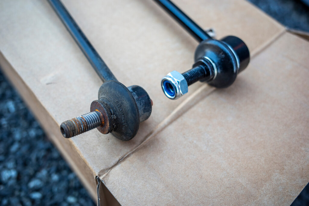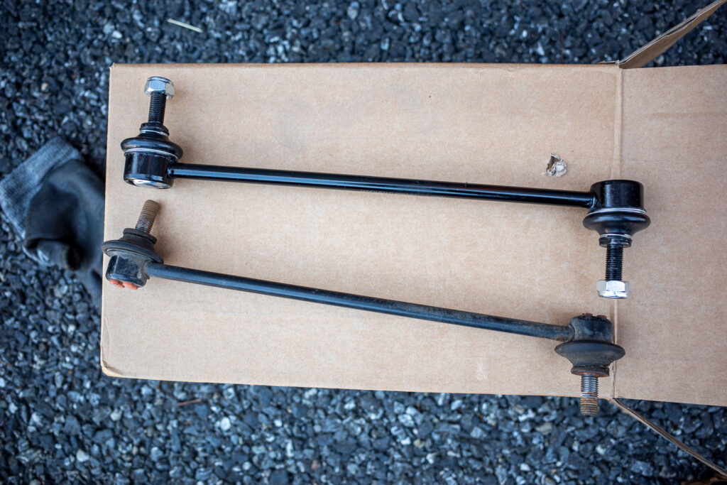左側も作業するのは億劫だし、このまましばらく様子を見ちゃおうか。という邪な考えも頭をよぎるが、スタビライザーは左右のサスペンションを連結させるものなので、片方だけ新品にすると他方にも何某かの影響が及ぶことが考えられるため、面倒だが左側も交換することにする。