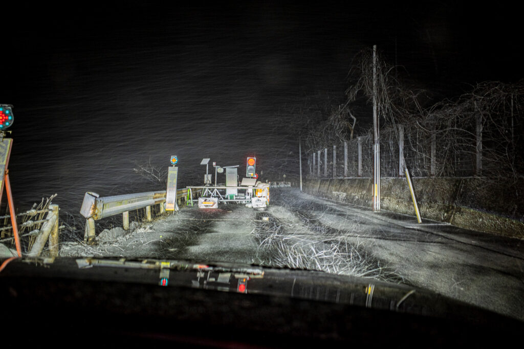 路面に積雪はほとんどないのですが、前方視界が悪いためスピードを上げることができない。