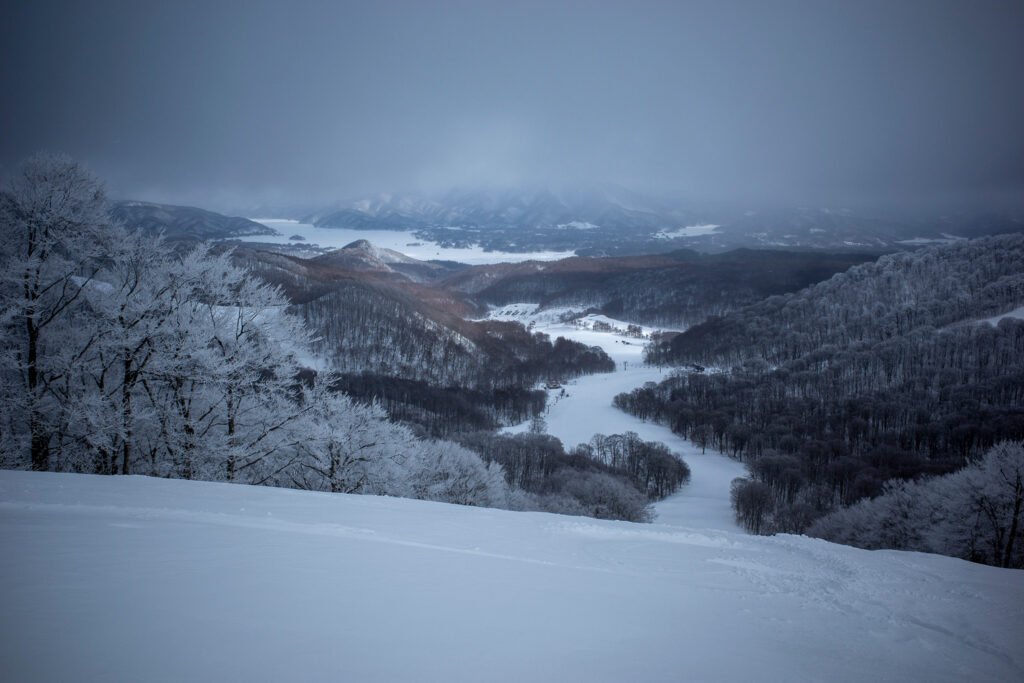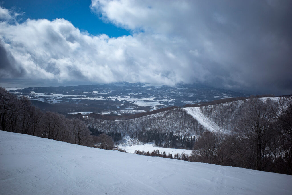 そうして南エリアに到着すると、雲が抜けはじめ、猪苗代湖に向けて視界が開けた。ナイスビュー!