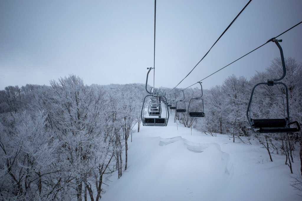 さておき、昨夜のブリザードの置き土産のような強風は、ここに来ても続いており、止まってしまうリフトも出るんじゃないか?と心配させられましたが、結果的には運休箇所もなく、リフトのほぼ全線を乗り継ぐことができた。