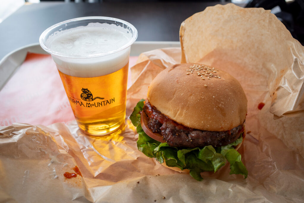 どう見てもその場でジュージューと肉汁たっぷりのハンバーガーを焼いて、火の通った熱々のバンズに載せてくれると思ったのですが、おねーさんがサクッと保温ケースから出してトレーに乗せただけだった・・・なんだよ出来合いじゃねーかよ。しかもコンビーフみたいな肉の味で大して旨くもないし。生ビールとセットとはいえ、これで¥2,600(税込)とはいかがなものか。見損なったぜ星野リゾート。