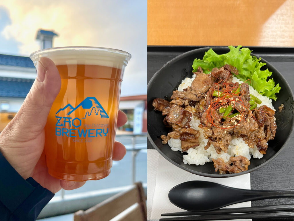 こちらのクラフトビール『蔵王ビール』の看板に心を射抜かれ、そちらを片手にレストランの『スタミナ焼肉丼』をいただいた。まさに道の駅車中泊冥利に尽きる最強ルーティン。お腹も心もととのわせさせていただいた。