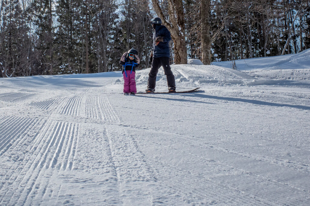 私がファミリーセッションに付き合っているように思われるかもしれないが、子供たちの集中力はそれなりなので、滑りに飽きて子供たちが雪遊びに興じている間、私はマッツンかユカチンのどちらかと滑ることになる。結果私はかなりの距離を滑ることができるし、私が滑りに飽きて子供達と雪遊びに興ずるのも、それはそれで楽しかったりする。というわけでWIN-WIN。