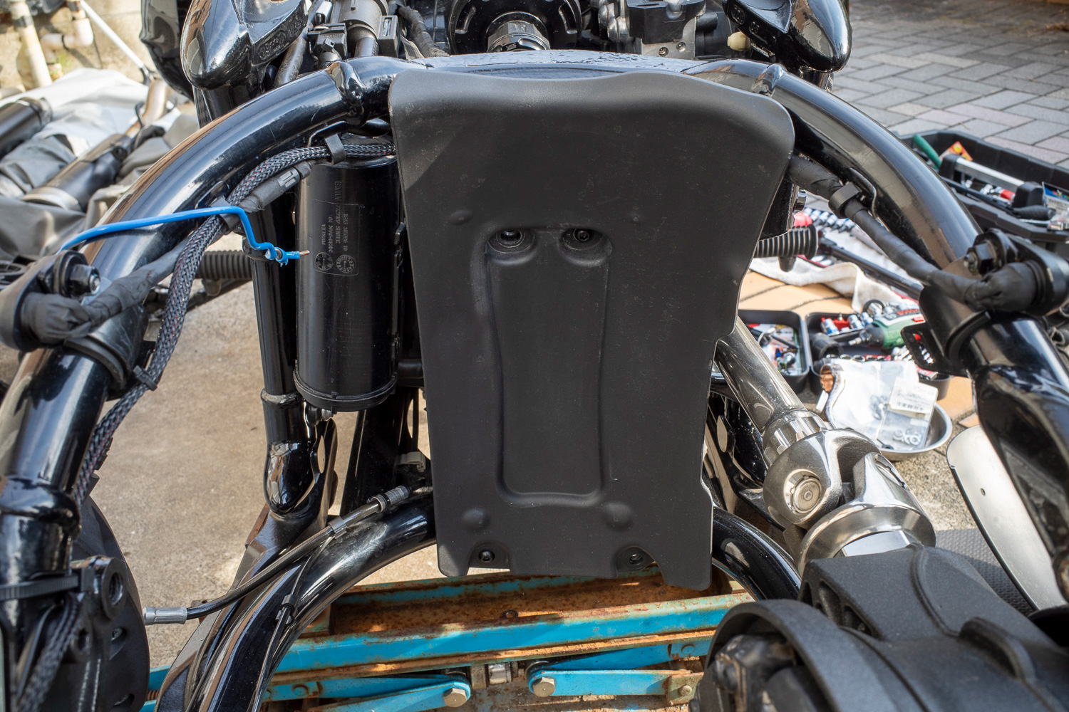 私は外したノーマルパーツはすべて保管してあるので、もちろんこのインナーフェンダーも持っている(しかもボバーフェンダーに換装してから納車したため未使用の新品の状態)なのですが、完全なノーマルに戻す選択肢は常に持っておきたい私は、加工が必要な場合は使わずに保存するようにしている。今の状態で我慢かな。なんてことを考えていたら、その後フリマでめでたく中古のインナーフェンダーを手に入れられたので、そちらを使って装着し直してみた。