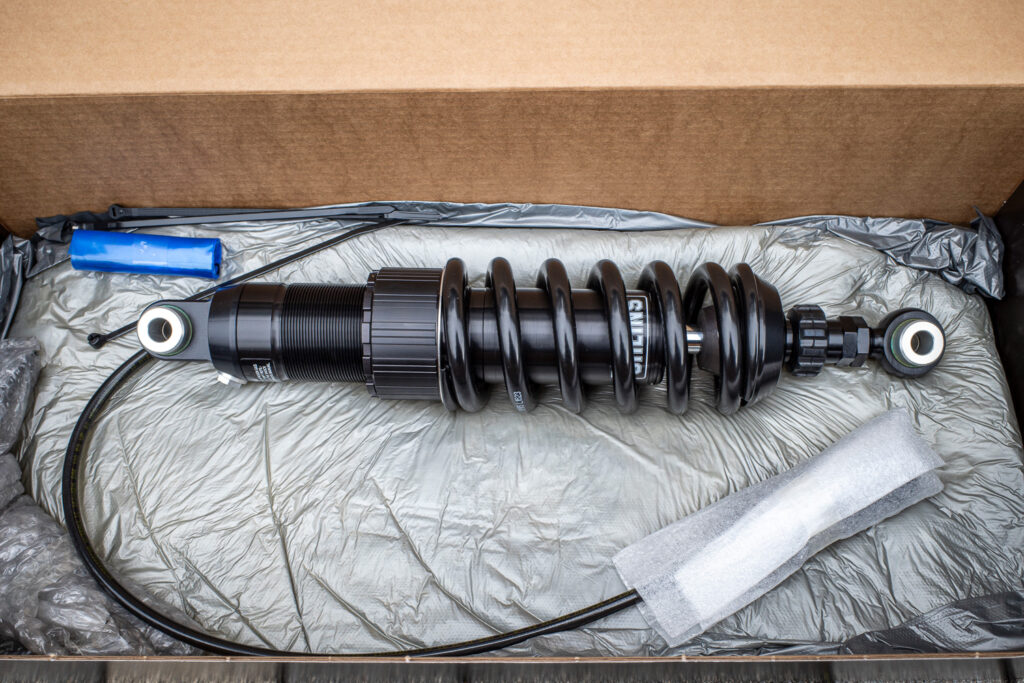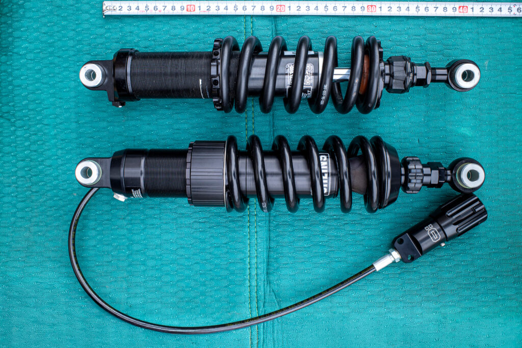 最大の見た目の違いは、ダイヤルを回すだけでプリロードが変更できてしまうリモート式のプリロードであるところ。言ったようにオーリンズはこれまでいくつも購入してきたが、リモート・プリロードアジャスターを装備するモデルを購入したのはこれがはじめて。
