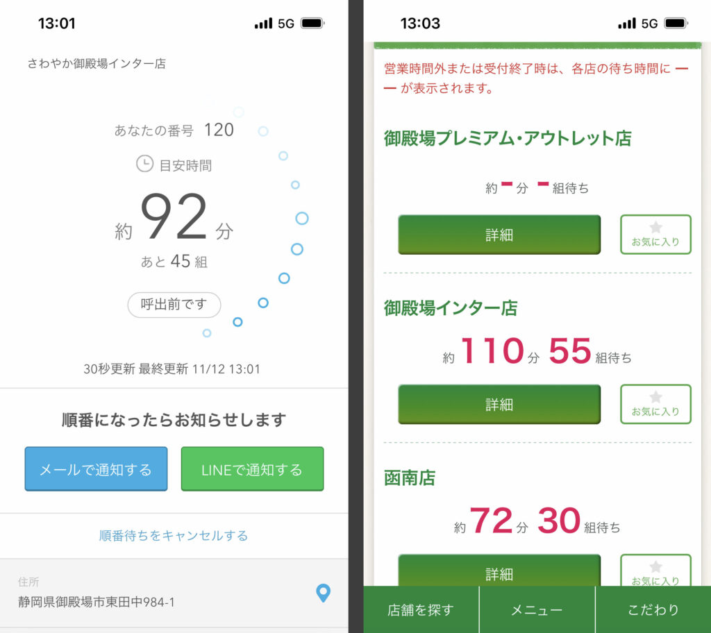 先ほどご覧いただいたように、整理券を受け取り、整理券に記されたQRコードを読み取るとスマホで自分の待ち時間をリアルタイムで確認できるようになっている。私の知る限りさわやかは最先端のファミリーレストラン。