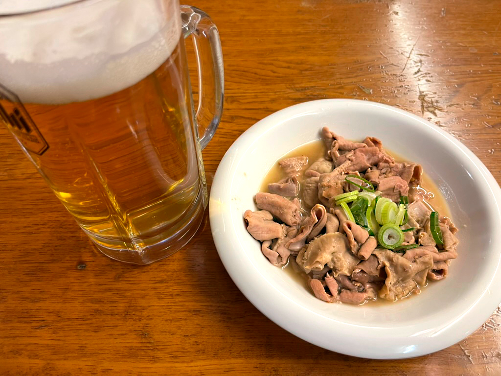 17時の開店から店内のテレビで大相撲を観ながら、誰に気兼ねすることもなくモツ煮を肴に大ジョッキを煽るオレ。