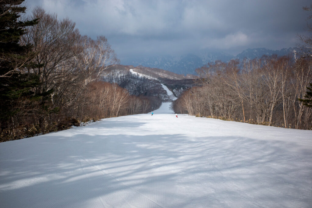 南向きの斜面などでは雪がないため閉鎖になっているコースもいくつかありましたが、ボトムまできっちり雪が繋がっている様子を見るに、この翌日で営業を終了するスキー場とはとても思えない。