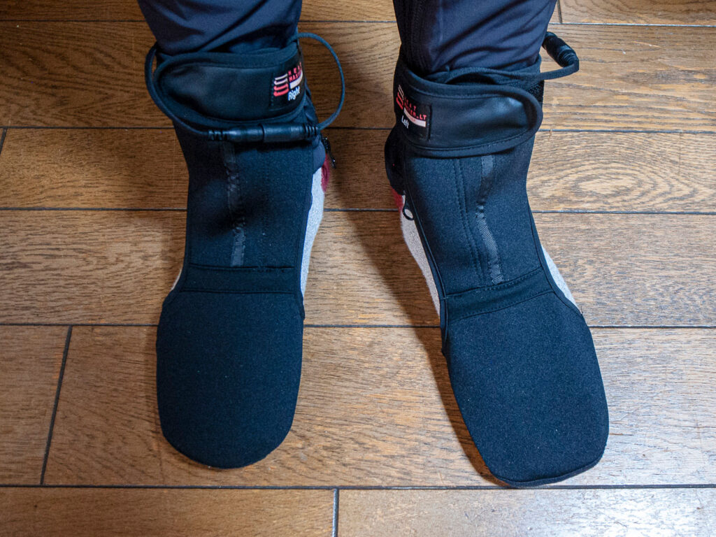 ちなみに、足先のウォーマーはパンツの電源と連動するため、トゥウォーマーだけを独立して使用することはできない。