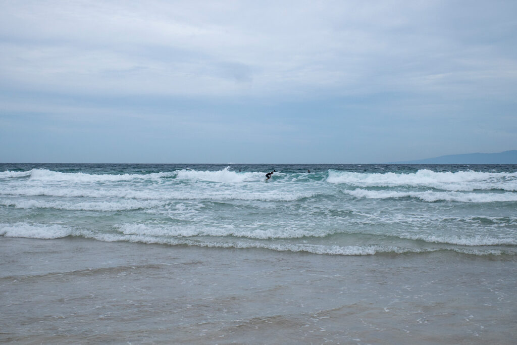到着し、イの一番でチェックに向かうと、案の定白浜はウィンドサーフィンが楽しそうな強風が吹き荒れていた。