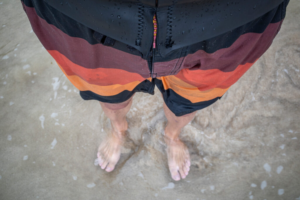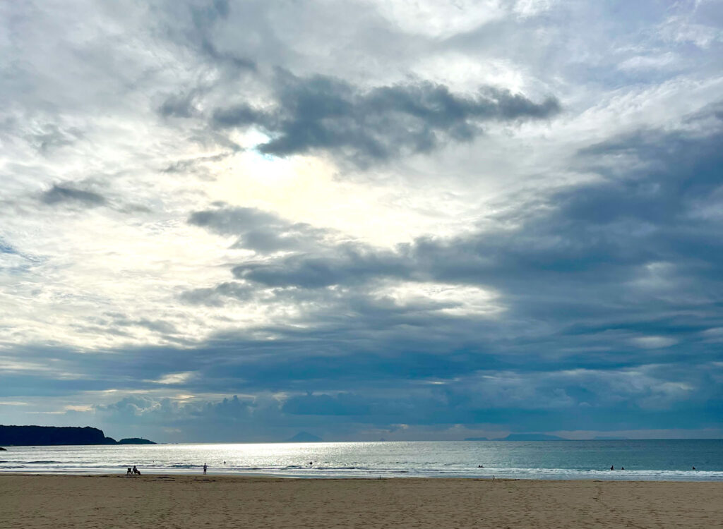 ご覧の通りの曇り空だったのですが「せっかくの伊豆だから」と、決意の海パン。