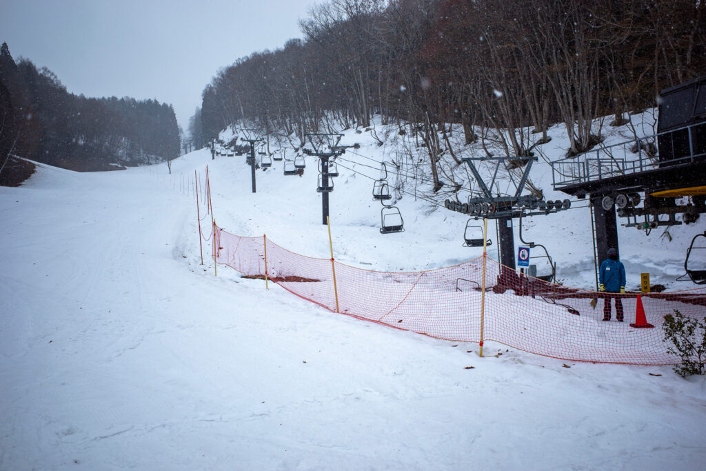 そもそも平日ですし、この天候に加え雪崩のニュースも重なったからか、案の定この日の斑尾高原はガラガラに空いていた。営業開始15分前でポールポジション。後ろに列はできたが10人程度。
