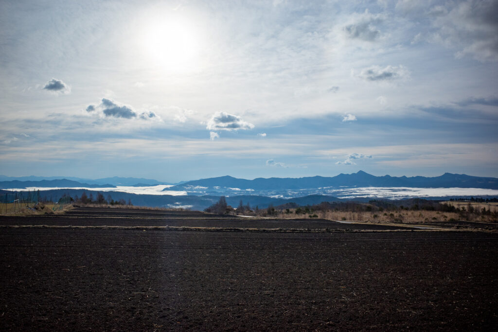 翌朝目が覚めると、車外は濃霧で真っ白。「こりゃあ失敗したかなあ」と、かなり不安な思いをしましたが、営業開始時刻が近づくにつれ晴れ間が広がってきた。