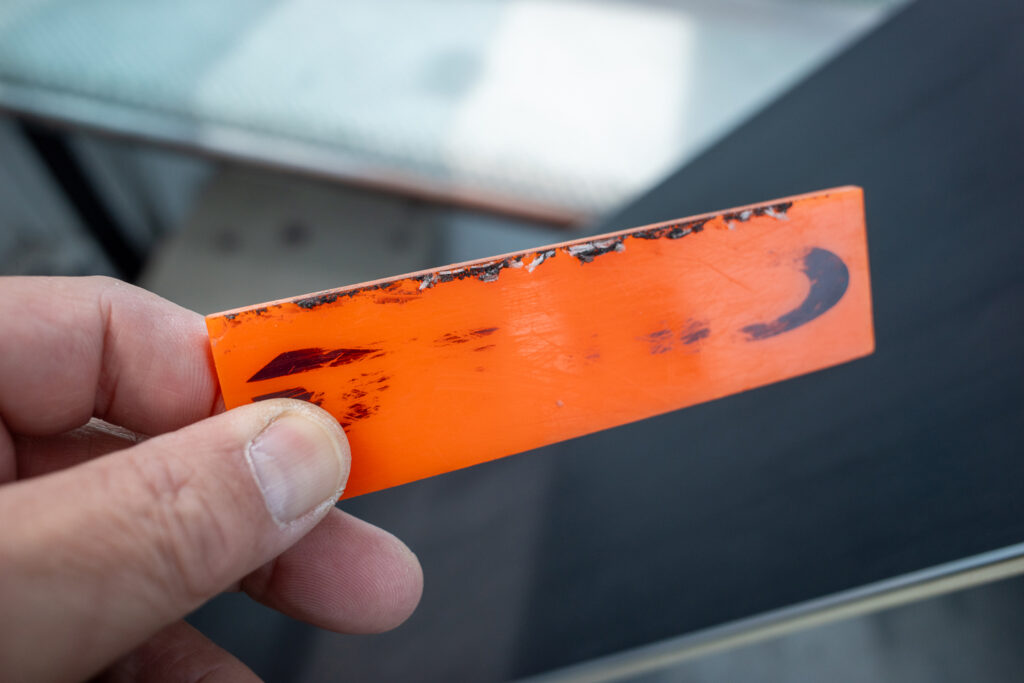 Kashiwaxであれば粉状になったワックスが取り除かれるところ、汚れと一緒に伸びているように感じたため汚れ落としをする必要があった。