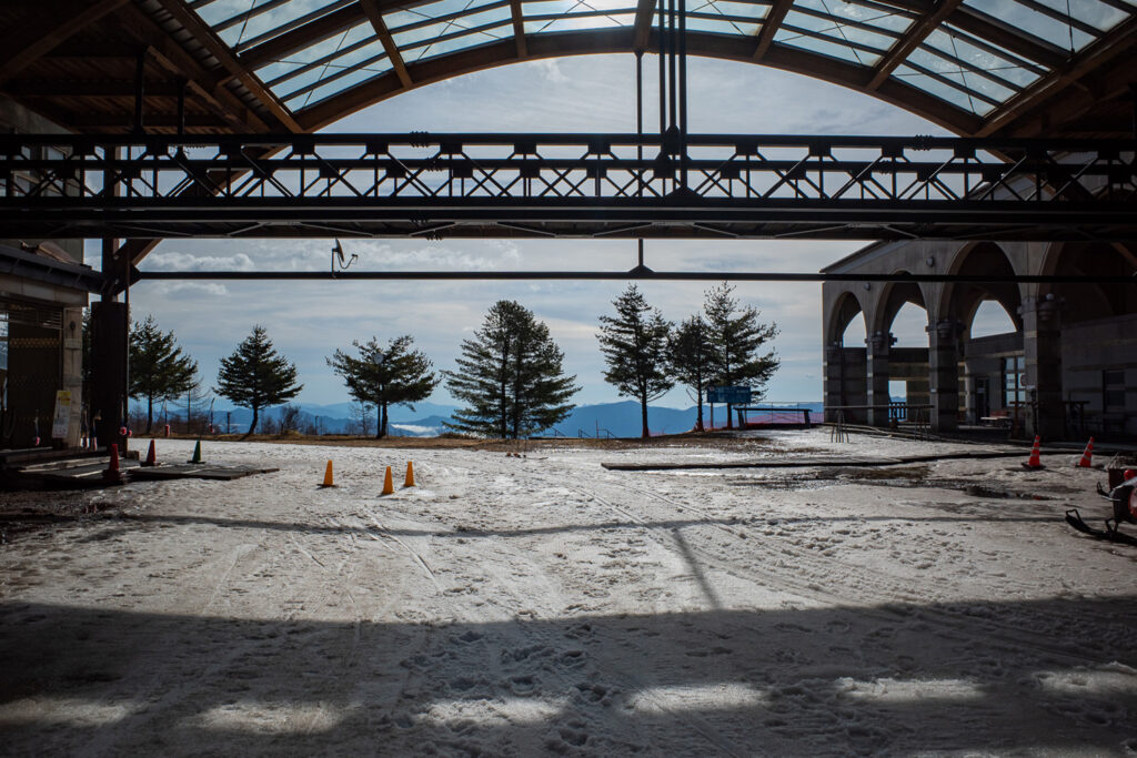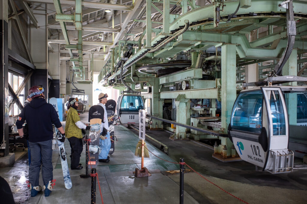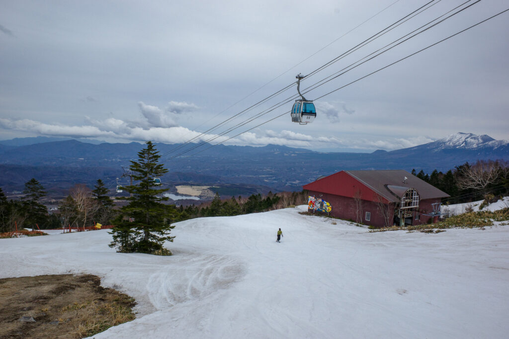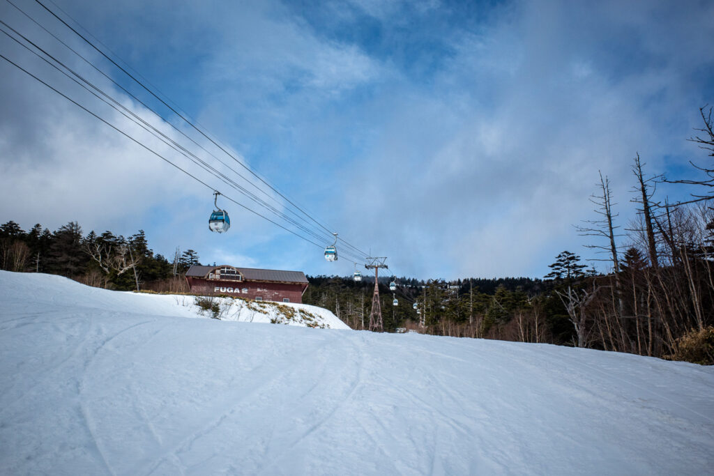 すでにゴンドラだけの営業でありましたが、場内は空いており、ゴンドラもおひとり様乗車になるため、15分ほどの乗車時間のあいだにワキシングができる。