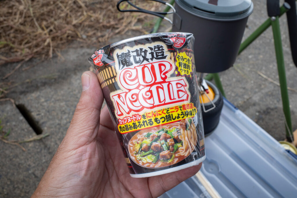 海から上がったら『魔改造カップヌードル』食べて、海を眺めながらシエスタと洒落込む。