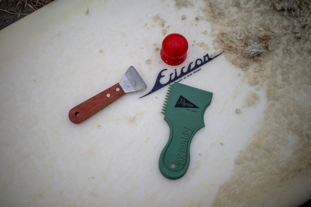ちなみに、板状のWAX BUDDYはこの2つとは全く比較にならないほど手が疲れるし剥がれてもくれない。炎天下での緊急事態限定工具といったところ。