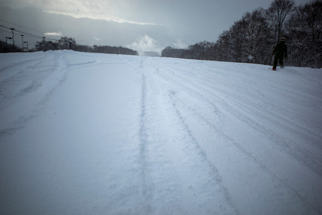 おかげでリフト4本にわたって3畳程度の新雪面を繋ぐ滑走ができてしまった。パウダー乞食万歳。