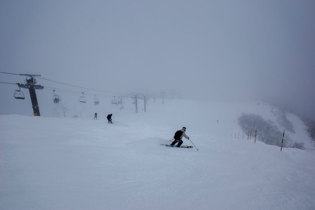 兎平、黒菱と2本ずつ滑り、もう2本パノラマコースを滑ったら、スキーにモードチェンジするため一旦下山。