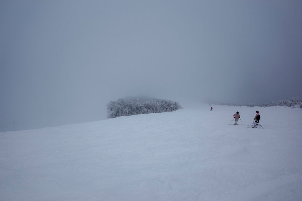 パノラマコースの斜面は斜度といい広さといい長さといい、まさにシーズンインのリハビリにもってこい。なのですが、パノラマコースの視界も悪い。