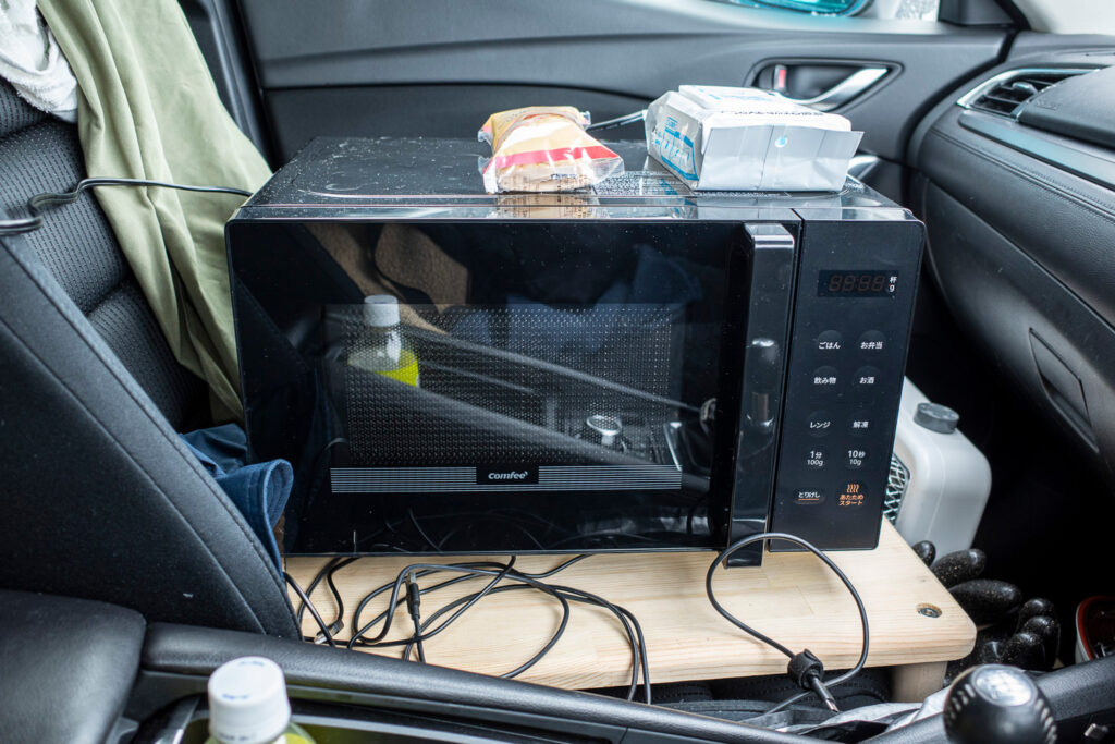 実は今回からついに我が家(車)にも電子レンジが装備された。