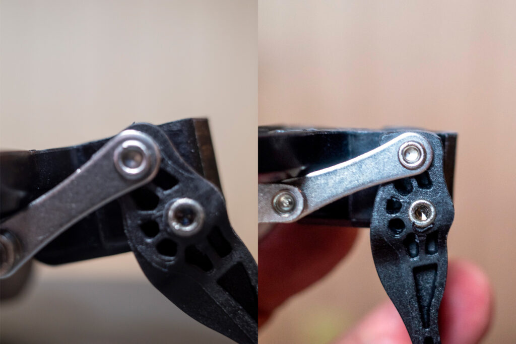 とうぜんこちらも時間経過と共に緩むため、元の状態とはズレてくる可能性があるので、ネジロック剤の塗布は当然のこととして、毎使用ごとにネジの増し締めなどの確認は必須となるだろう。