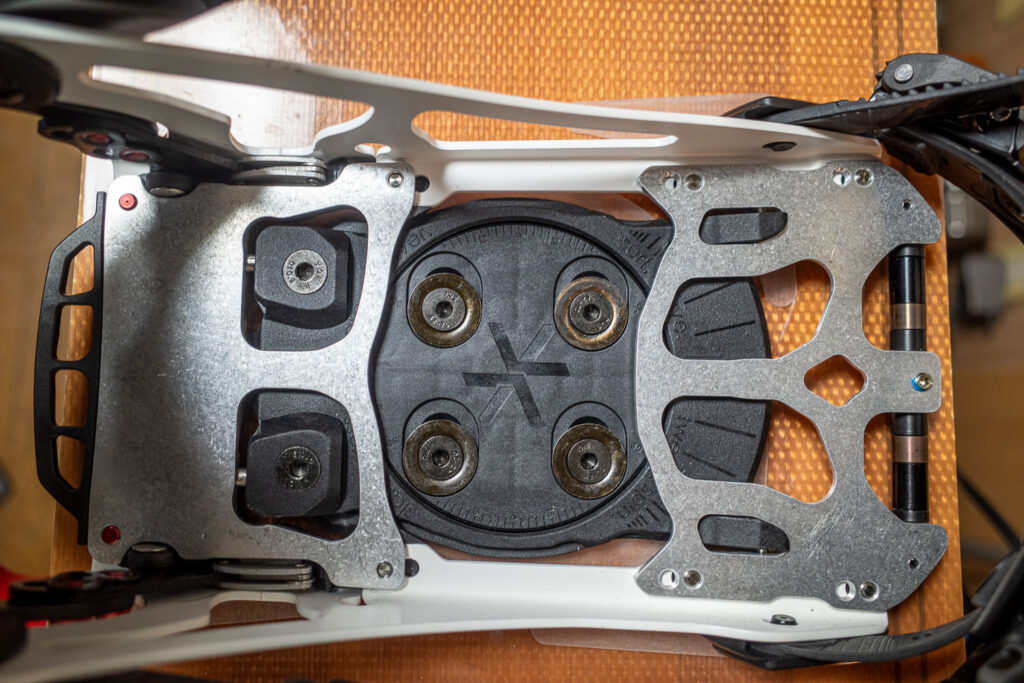 スタンス幅に本体側のクリアランス、スタンスアングル、前後位置などを同時に見渡しながらネジを絞めてバラバラのパーツをひとつに固定していかないとならない。