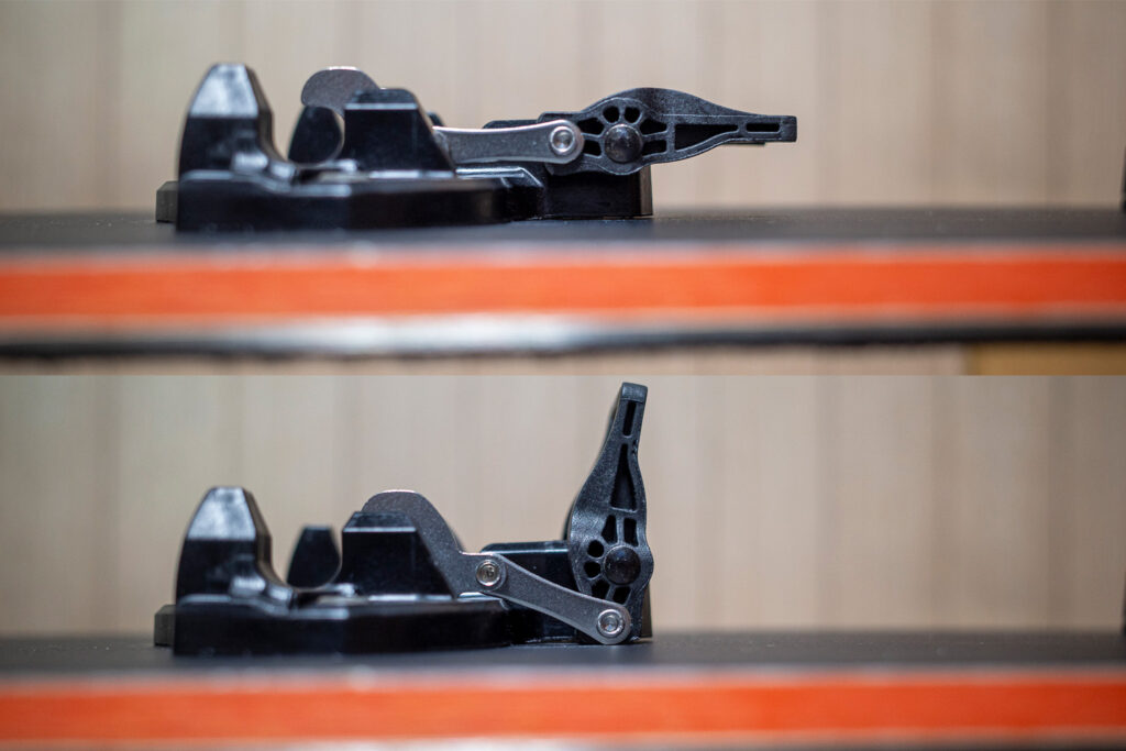 それを両立させるために、このトリガー・システムが考案されたわけなのですが、横方向に動くトリガーで、いかにバインディングを下方向に押し付けるのか?