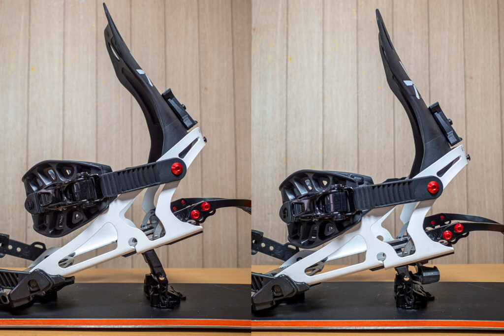 高さ二段階のヒールライザーはボード側のヒールレストに装備される。