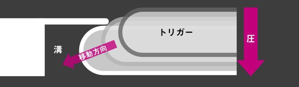 そうなればもちろん先述したトリガーと溝の位置関係にも少なからず影響が出てくる。